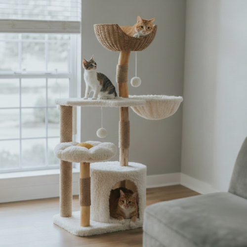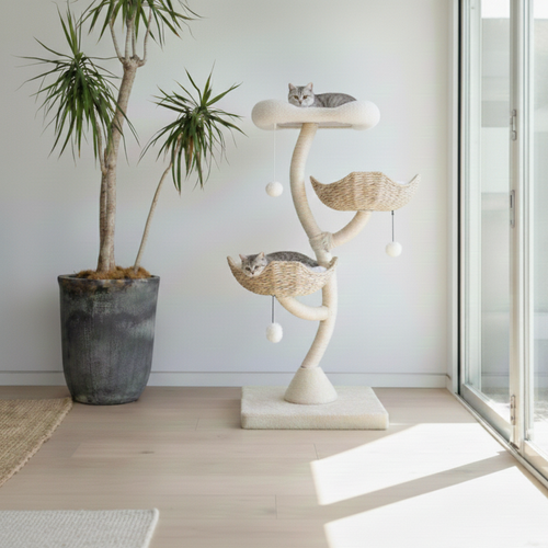 Les arbres à chats en bois offrent une esthétique épurée et intemporelle qui s’intègre harmonieusement à votre intérieur. Plus durables et stables que les modèles traditionnels, ils allient design contemporain, robustesse et confort pour votre chat.